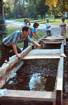 The process of bringing the second beam across the creek. (I wanted to be there bearing the load, but everyone insisted that I take the pictures.) |