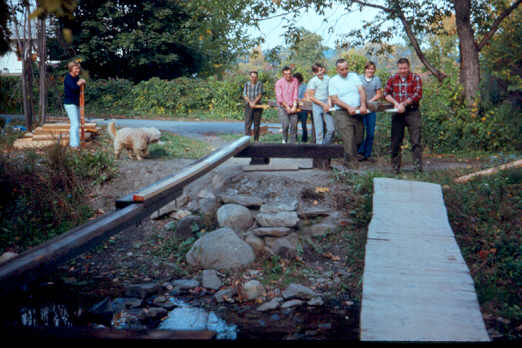 The process of bringing the second beam across the creek. (I wanted